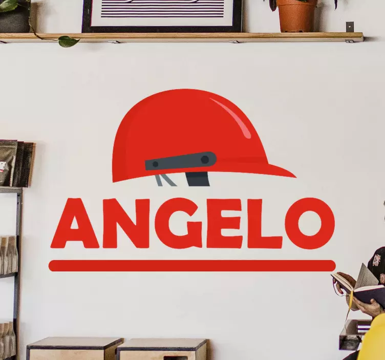 参考: A50553このデザインは、ハードハットと目立つ名前を組み合わせています。これはユニークな識別子として機能し、作業スペースやクリエイティブスペースのパーソナライズに最適で、プロフェッショナルな建設テーマを体現しています。