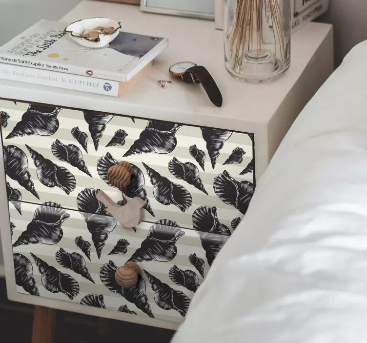 私たちの動物シールシェルプリントモチーフは、家具やシェル、貝殻のデザインが特徴で、ストライプのパターンが自然を感じさせるエレガントな室内装飾にぴったりです。黒と白のシンプルな配色が、どんな空間にも調和し、洗練された印象を与えます。あなたのインテリアに新たな息吹を吹き込み、訪れる人々を魅了することでしょう!