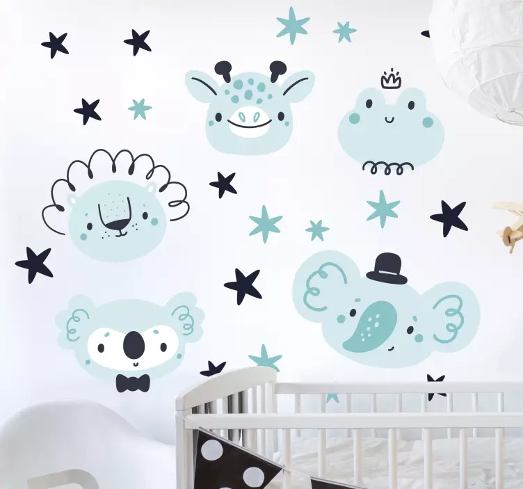 参考: A53808愛らしい動物の表現は、遊び心あふれるその性質で子供の空間を引き立てます。さまざまなかわいいキャラクターや星のモチーフが特徴のこのデザインは、喜びと想像力を呼び起こし、保育室や遊び部屋にぴったりです。