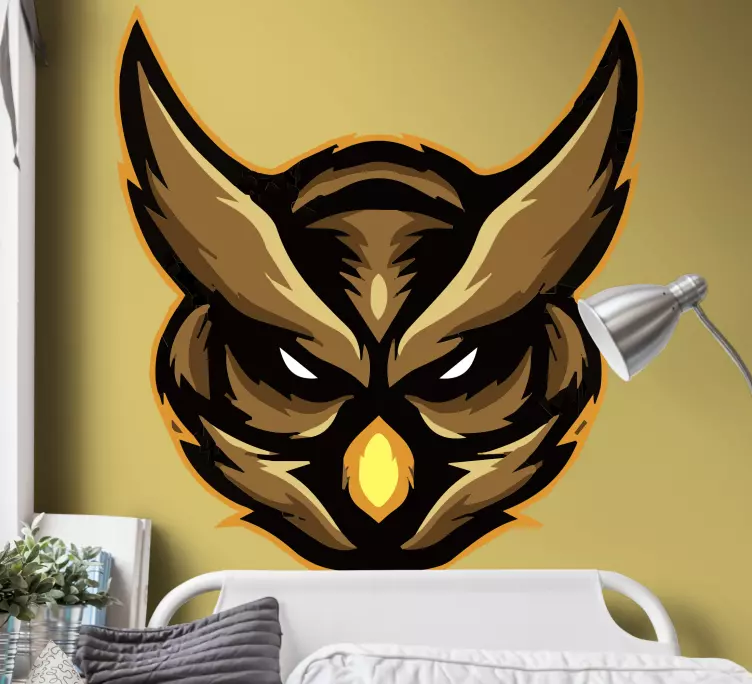 参考: A51535このイメージは、力強い目と詳細な羽毛を特徴とする猛々しいフクロウの顔を描いています。このデザインは、強さと知恵を体現しており、注目を集める印象的な視覚要素となり、どんな空間の美しさを高めます。