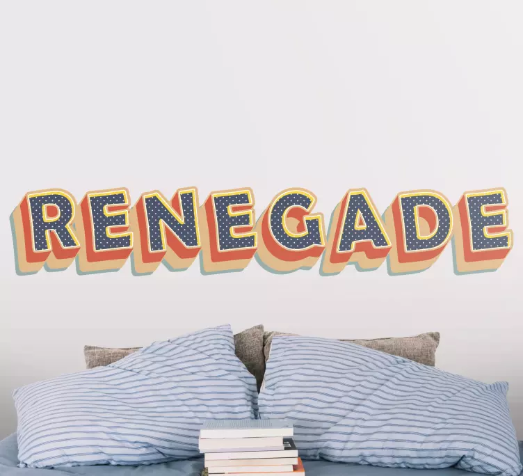 参考: A48092「Renegade」の魅力的な文字は、鮮やかな色と形の見事な組み合わせを特徴としており、大胆な印象を与えています。この目を引くデザインは、どんな空間にも個性と創造性を呼び込み、魅力を加えます。
