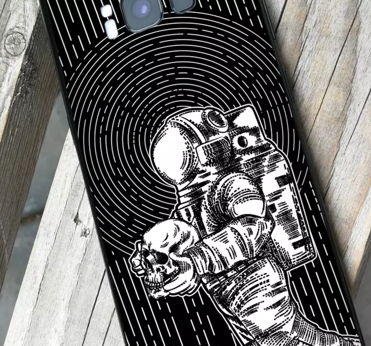 参考: A48462宇宙飛行士が頭蓋骨を持ち、渦巻く線に囲まれた印象的な画像で、魅惑的な効果を生み出しています。このデザインは、宇宙の神秘と探査の感覚を呼び起こし、サイエンスフィクションの要素と鮮やかなモノクロのコントラストを融合させています。