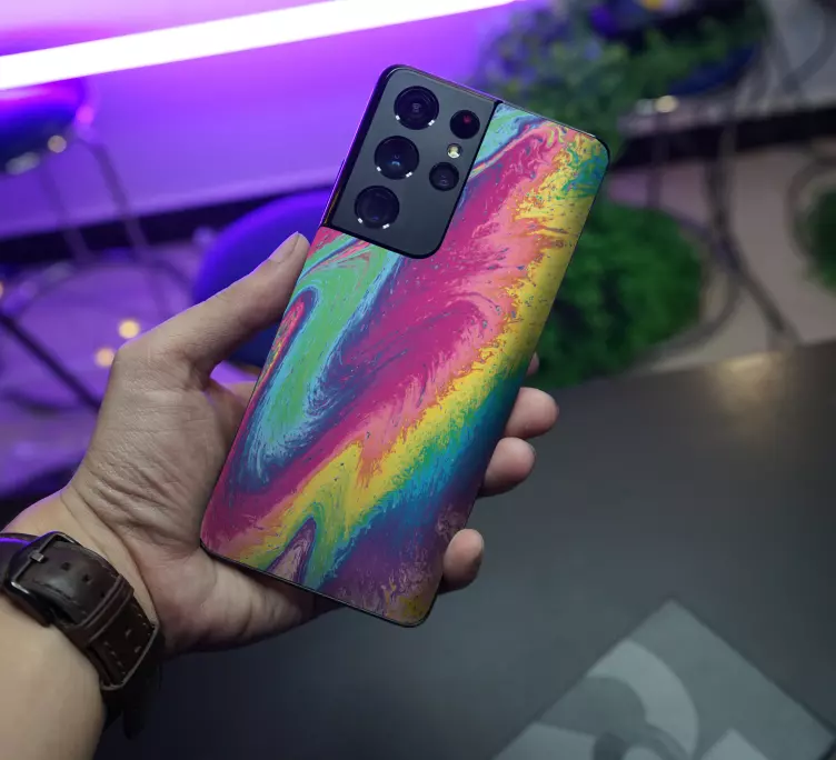 参考: A49208ピンク、ブルー、グリーン、イエローの渦巻く色合いが特徴の鮮やかなデザインで、魅惑的な流動パターンを生み出しています。この目を引くモチーフは、個人のアイテムを引き立てるのに最適で、どのデバイスにもモダンなタッチを加えます。