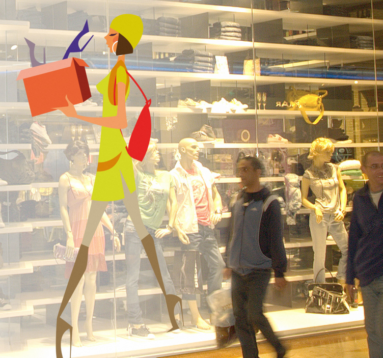 参考: A52444ファッショナブルなキャラクターがアイテムで満たされた箱を持っている様子が描かれており、ショッピングの喜びを象徴しています。鮮やかな服装と高いヒールはスタイルと自信を表現しており、現代の小売美学に訴えかけています。