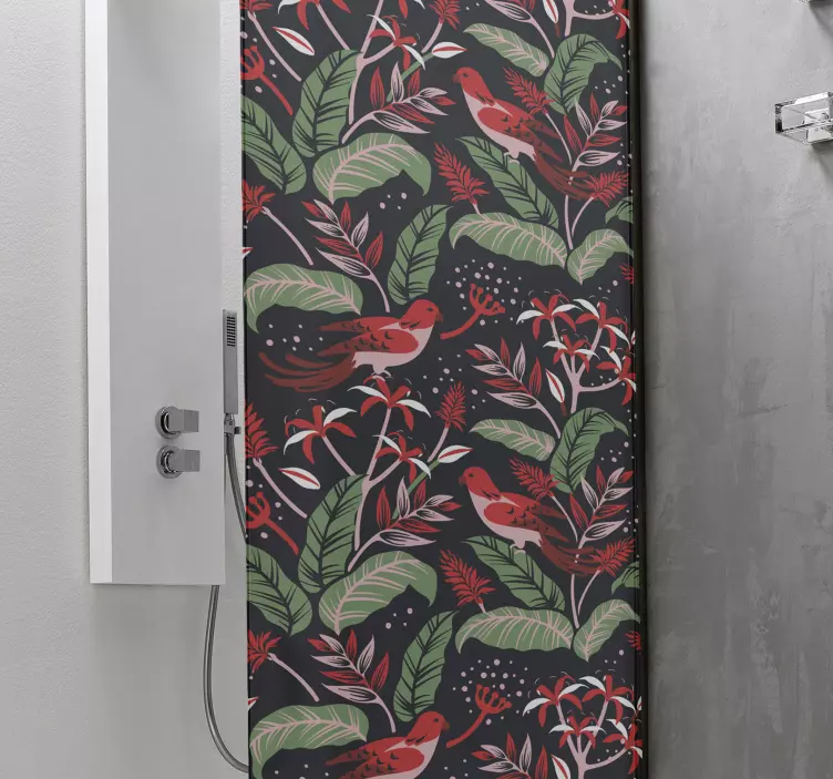 動物 シール 植物的な鳥のコンセプトは、自然の美しさを引き立てるためにデザインされた製品です。この製品は、シャワースクリーンに映える美しい葉や花、そして活気に満ちた鳥のパターンを特徴としており、緑と赤の色合いが調和したデザインが魅力です。自然にインスパイアされたこの製品は、どんなインテリアにもマッチし、あなたの空間を明るく彩ります。この製品を装飾に使用する理由