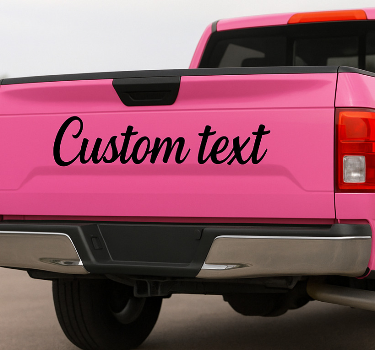 画像には、エレガントでパーソナライズされた刻印が際立つ鮮やかなピックアップトラックのテールゲートが描かれています。このカスタマイズ可能なデザインは個々の表現を可能にし、個人用またはプロモーション用に最適です。遊び心のあるフォントで書かれた引用は、ユニークさとアイデンティティを強調し、カスタマイズにおける創造性を促しています。
