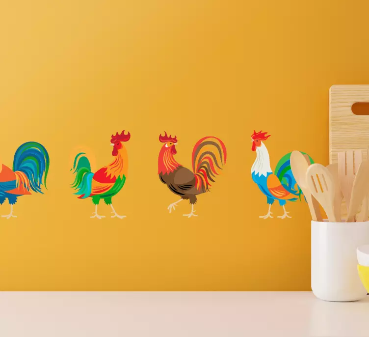 私たちの動物 シール カラフルなニワトリのディスプレイは、楽しくカラフルなデザインで、オンドリやニワトリが農場の雰囲気を演出します。キッチンやリビングルームで目を引くこのシールは、動物好きにぴったりです。鮮やかな色合いが空間を明るくし、温かみのある農場の雰囲気を作り出します。オンドリやニワトリのデザインが特徴的で、どんなインテリアにも調和します。