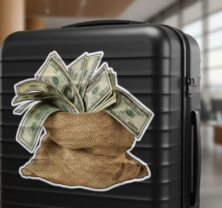 画像の中心には現金が溢れ出る麻袋があり、富と繁栄を象徴しています。散らばった紙幣は豊かさを示し、経済に対する気楽な態度を表しています。これは経済的自由の本質を捉え、視聴者に機会と資源に満ちた生活を目指すよう促しています。 動物 シール お金の袋