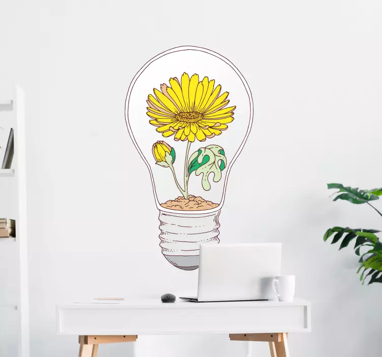 私たちの「動物 シール 開花する電球」は、目を引くデザインで、電球の中にひまわりや葉、花が咲く様子を表現しています。この美しいグラフィックは、自然の成長と生命力を感じさせるコンセプトを持っており、特に黄色の色合いが明るさと楽しさを加えています。あなたの空間に自然の美しさを取り入れるための完璧なアイテムです!
