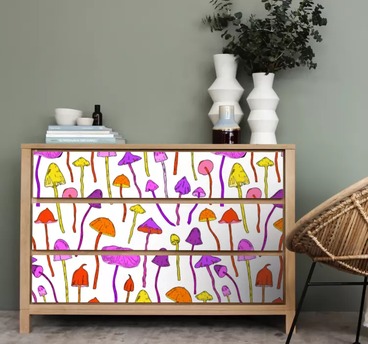 参考: A49426この鮮やかなデザインは、さまざまな色と形のきのこが描かれています。この生き生きとした構成は、どんな空間にも遊び心と新鮮さをもたらし、自然の美しさを称賛しながら、その美的魅力を高めます。