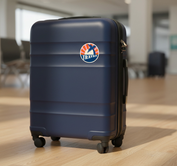 耐久性のあるラゲッジは、旅への欲望をかき立てる鮮やかなデザインが特徴です。円形のグラフィックは、ヤシの木のシルエットと日の出の背景でトロピカルな雰囲気を捉えています。'TRAVEL'という言葉は冒険と探検の精神を呼び起こし、新しい目的地への旅を促します。