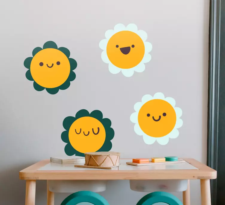 参考: A48406明るく楽しいデザインで、幸せな花のキャラクターが特徴です。各花はユニークな表情を持ち、どんな空間にも遊び心と喜びをもたらします。子供の環境に最適で、これらの要素は創造性と温かい雰囲気を高めます。
