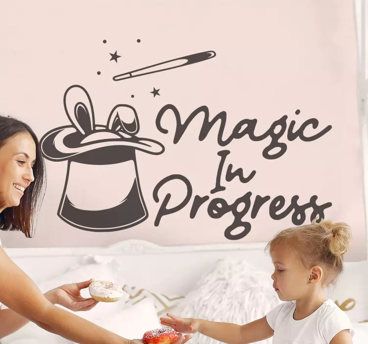 星や魔法の杖といった遊び心あふれる要素で飾られた魔法の帽子が特徴的な魅力的なシーンで、創造性を刺激するのに最適です。『Magic In Progress』というフレーズが whimsical なタッチを加え、子供の想像力の喜びを捉えています。明るい空間にぴったりです。