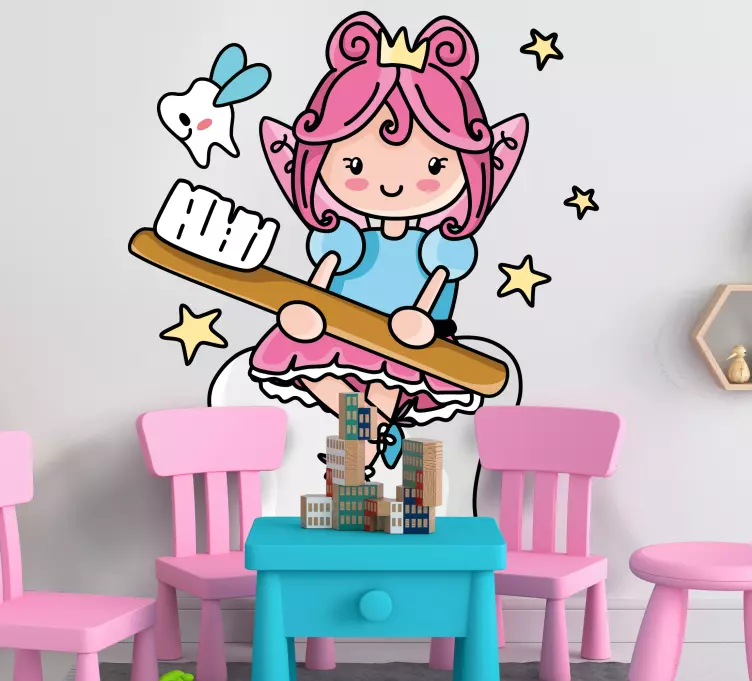 参考: A48806歯ブラシを持ち、遊び心満載の表情をした魅力的な歯の妖精の描写。このデザインは、子供たちのスペースに魔法のような雰囲気を加え、楽しい歯の習慣を促しながら、カラフルで陽気な要素で想像力をかき立てます。