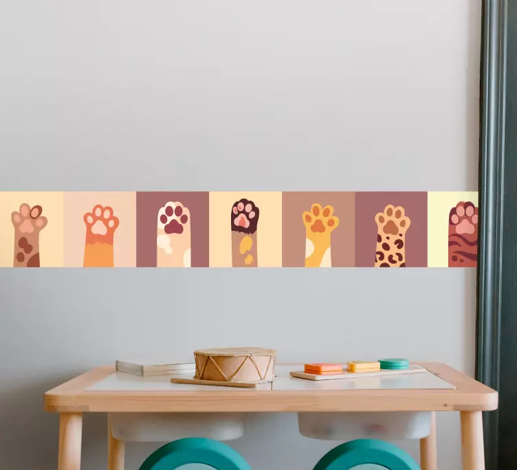 さまざまな足跡の色とパターンが組み合わさった鮮やかなアレンジメント。この遊び心あふれるデザインは、遊び好きなペットの本質を捉えており、空間に whimsical なタッチを加えたい動物愛好家にぴったりです。