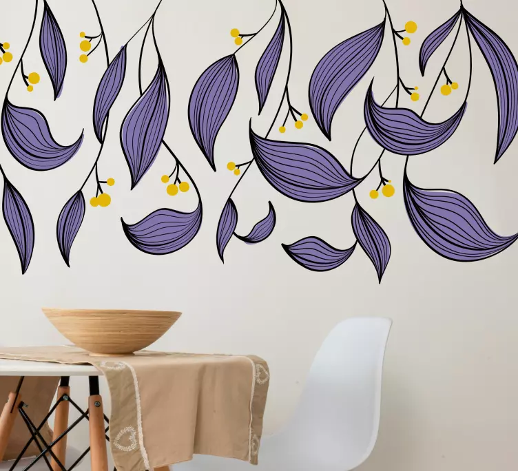 スタイリッシュな紫の葉に黄色のアクセントが加わり、エレガントなアレンジメントが作られています。葉の複雑に絡み合ったデザインは新鮮で活気のある雰囲気を醸し出し、リビングスペースを引き立てるのに最適です。このデザインは、周囲を圧倒することなく自然の要素を取り入れています。
