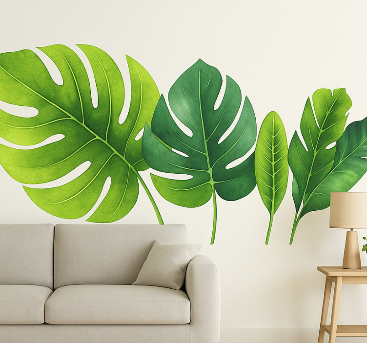 スタイライズされた葉の鮮やかなアレンジメントは、どんな部屋の装飾を引き立てます。これらの豊かな緑の要素は、自然と静けさの感覚を呼び起こし、屋外の雰囲気を室内に取り入れるのに最適です。オーガニックな形状とさまざまなサイズが視覚的な興味を生み出し、このデザインは新鮮で活気のある雰囲気を求める人気の選択肢となっています。