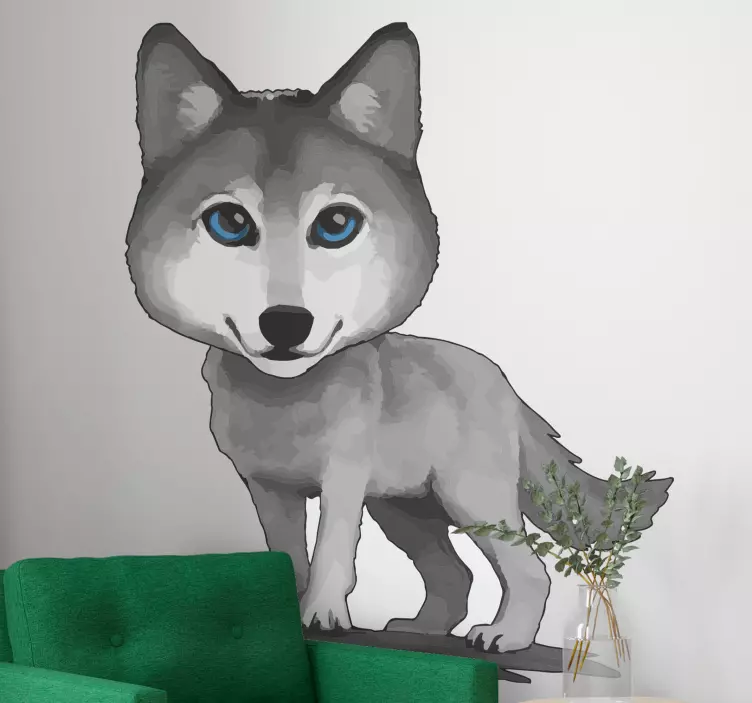 魅力的な青い目を持つ遊び心満載のオオカミキャラクターが自信に満ちて立ち、愛らしい表情で注目を集めています。このデザインはオオカミの魅力的な特徴を引き立てており、動物愛好家やスペースに少しの whimsy を加えたい人々にぴったりの素敵な焦点となっています。
