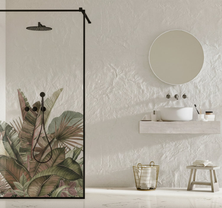 参考: A54308美しくデザインされたシャワーエンクロージャーは、豊かな熱帯植物を特徴としており、バスルーム空間に活気を与えています。自然の要素が新鮮な雰囲気を創出し、全体の静けさを高めています。細部にわたる丁寧なデザインが自然の美しさを強調し、リラックスを促します。これは現代のインテリアに最適な選択です。