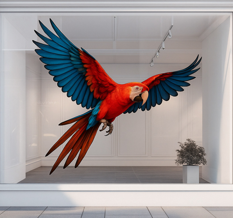 空中を飛翔するオウムの印象的な描写で、鮮やかな羽毛がその威厳を強調しています。このデザインは自由と自然の美しさの本質を捉え、観る人々に動物の翼や色彩の細部を楽しむよう促します。このアートワークは、野生とのつながりや鳥類保護の重要性を感じさせます。