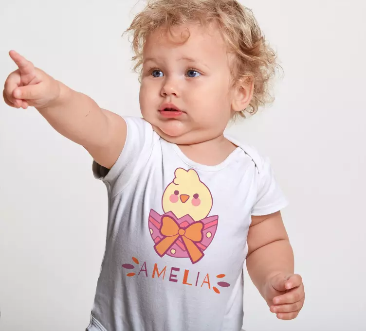 私たちの赤ちゃんシャツ可愛いリボン付きひよこは、遊び心のあるデザインとカラフルな色合いが特徴です。ひよこのモチーフに加え、可愛いリボンがアクセントとなり、赤ちゃんの可愛さを一層引き立てます。動物好きなお子様にぴったりのこのシャツは、個々の名前を入れることができるパーソナライズ可能なアイテムです。親しみやすいデザインの中に、赤ちゃんの鳥や卵などの要素が散りばめられ、楽しい気持ちを与えてくれます。おしゃれでありながら、赤ちゃんの快適さも考えられた一枚です!