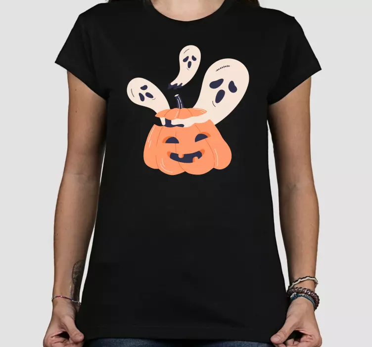 この活気に満ちたデザインは、陽気なかぼちゃとそこから現れる遊び心満載の幽霊たちを描いており、軽やかなハロウィンの雰囲気を醸し出しています。カラフルな要素は、楽しさと whimsy を添えて季節を祝いたい人に最適です。