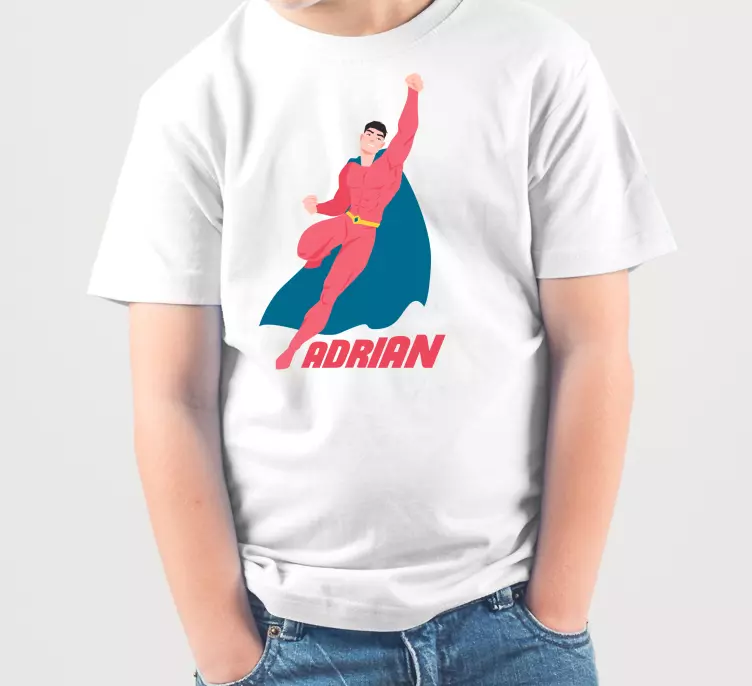 ダイナミックなスーパーヒーローキャラクターが鮮やかな色合いで描かれたこのデザインは、冒険と楽しさの精神を捉えています。流れるマントによって強調されたエネルギッシュなポーズは子供たちに訴えかけ、彼らのワードローブに興奮をもたらします。お祝いの場にぴったりで、喜びと想像力を体現しています。