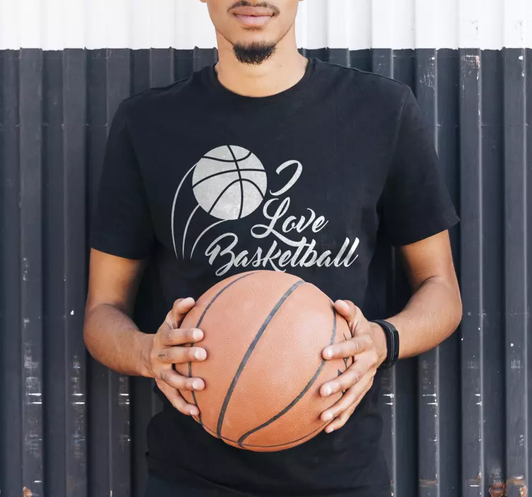 デザインは「ilovebasketball」と書かれたテキストフレーズで、美しい文字で書かれたテキストフォントのレタリングがあり、手描きのバスケットボールのイラスト、効果のあるバスケットボール、単色のデザインが特徴で、楽しむことができます。