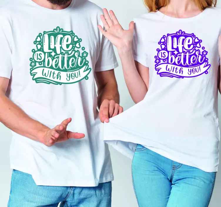 このデザインは、仲間との喜びを強調する明るいメッセージを際立たせています。マッチングアパレルに表示された鮮やかなテキストと装飾が温かい雰囲気を生み出し、愛と団結を表現するのに最適です。お祝い事やカジュアルな外出にぴったりで、つながりと幸福のテーマに共鳴します。