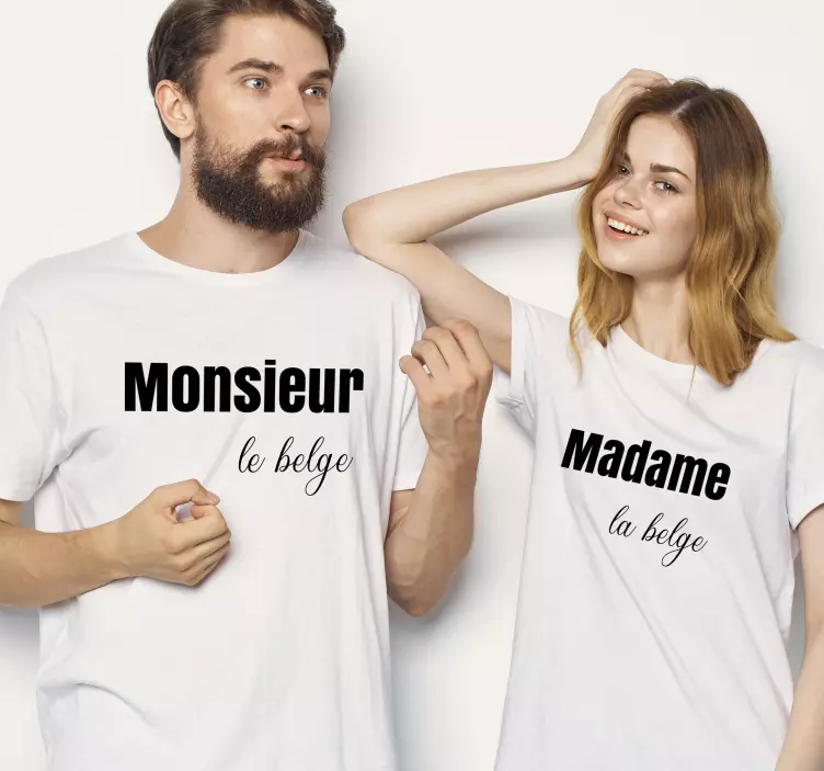 このスタイリッシュなアパレルは、マッチングアウトフィットを着た魅力的なカップルを展示しています。それぞれのシャツには、対照的なフォントでユニークなテキストが表示されており、遊び心とファッション性を高めています。シンプルでありながら効果的なデザインは、連帯感を促進し、絆を祝いたいカップルにぴったりです。