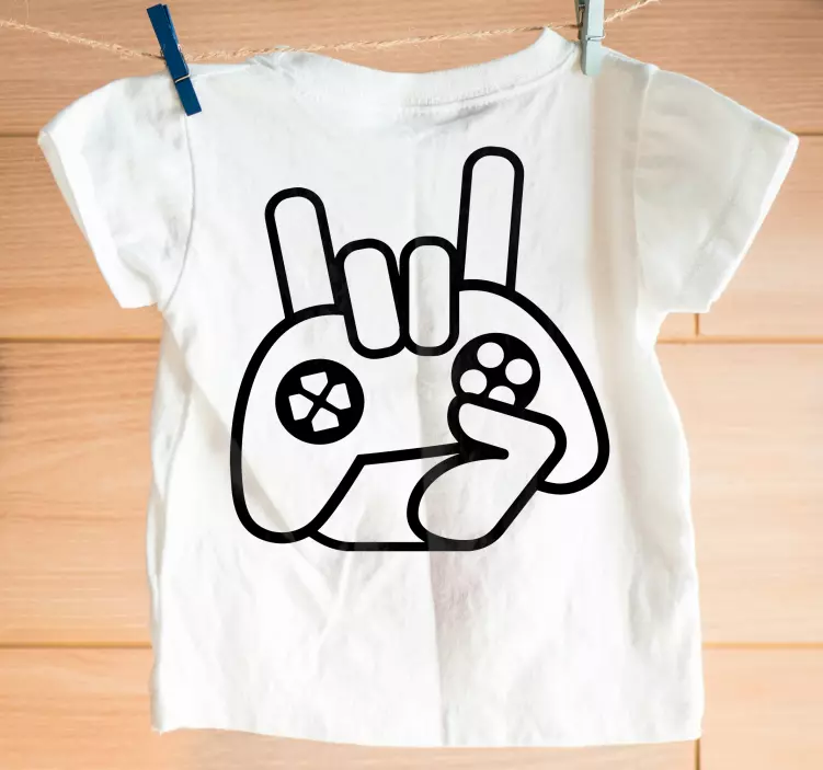 子供のためのコントローラーシャツを備えたロックサインのこのシルエットは、見やすいです。滴り、しみ、ソーダのこぼれを心配する必要はありません。洗濯機に入れることができます。