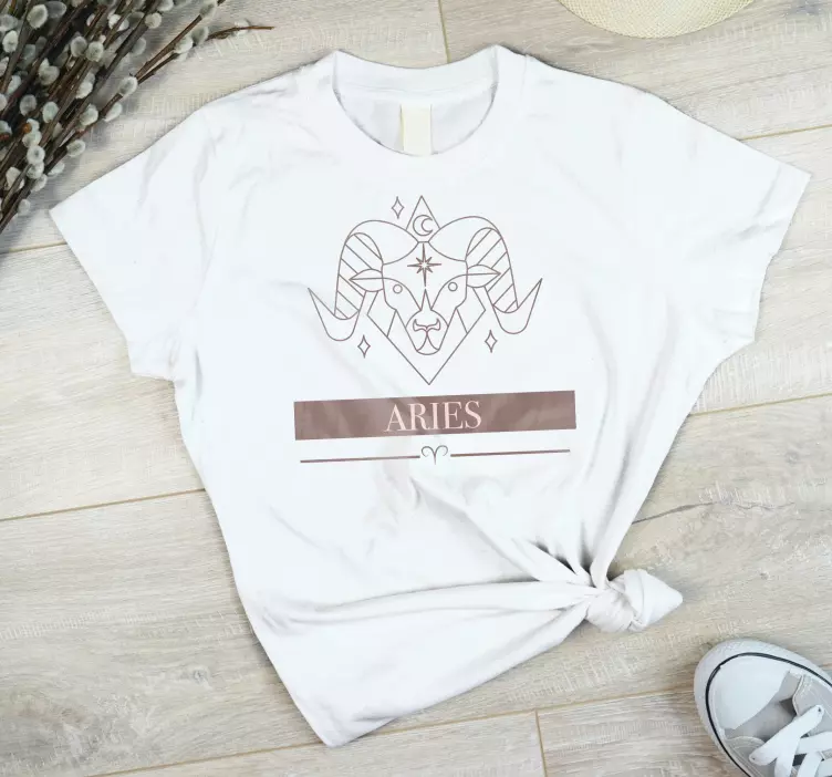このデザインは、牡羊座の象徴的な羊の頭をエレガントなラインと幾何学的な形状で表現したミニマリストのスタイルを特徴としています。構成には微妙な星の要素が含まれており、星座のテーマを強調しつつ、現代的な美学を保っています。