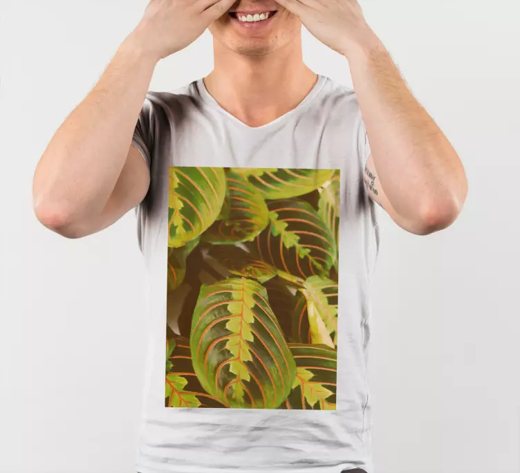 私たちのシャツ緑の葉模様は、自然の美しさを感じさせるデザインで、マランタや葉、トロピカルな要素が見事に融合しています。緑のエキゾチックな植物が描かれたこのシャツは、まるで密林の中にいるかのような新鮮で活気に満ちた印象を与えます。テクスチャーも豊かで、自然の息吹が感じられる一枚です。