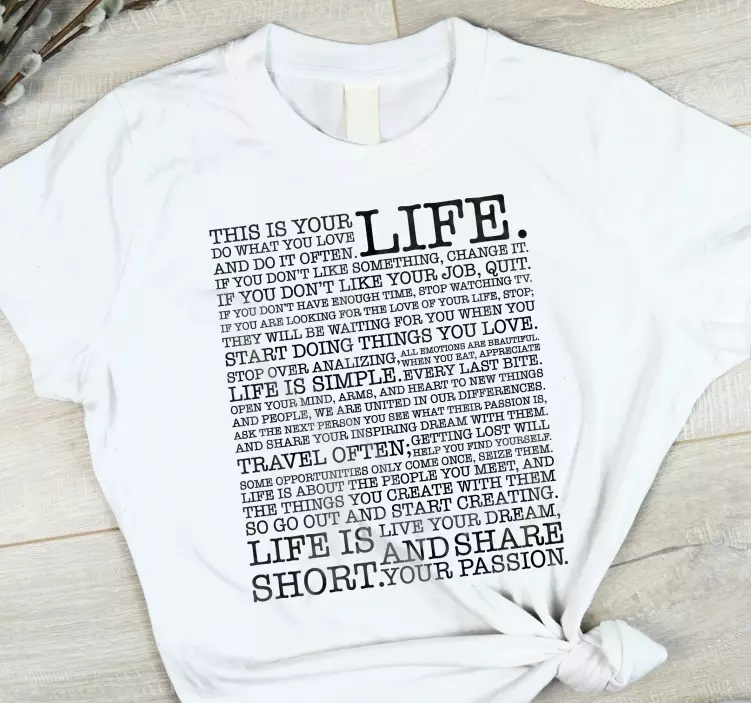 「シャツあなたの情熱を生きる」を長持ちさせるためには、洗濯機で30度の水温で洗うことをお勧めします。アイロンをかける際は、裏返しにするか、デザインにバリア布を使用してください。大切に扱うことで、いつまでも美しいデザインを楽しむことができます。