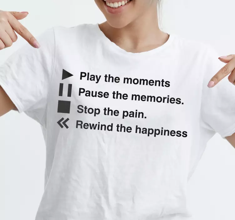 私たちのシャツ幸せの瞬間は、シンプルでありながら深い意味を持つデザインが特徴です。演奏する、一時停止する、止まる、やる気を起こさせる文章やスローガンが黒と白の背景に映え、感情を呼び起こします。英語の引用符で飾られたメッセージは、あなたの心に残るメモリーとして、毎日のファッションに幸せを運んでくれるでしょう!