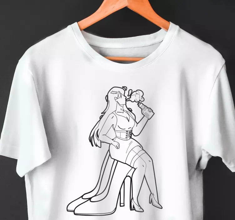 私たちのシャツは、女性らしい魅力を引き立てるためにデザインされており、シルエットはスタイリッシュで洗練されています。手で書かれたようなユニークなスケッチが印象的で、ハイヒールを履いた自信に満ちた女性の姿を描写しています。このデザインは、喫煙やvapeの図柄も取り入れ、ファッション性を高めています。カクテルパーティーや特別な場面で着用することで、注目を集めること間違いなしです。