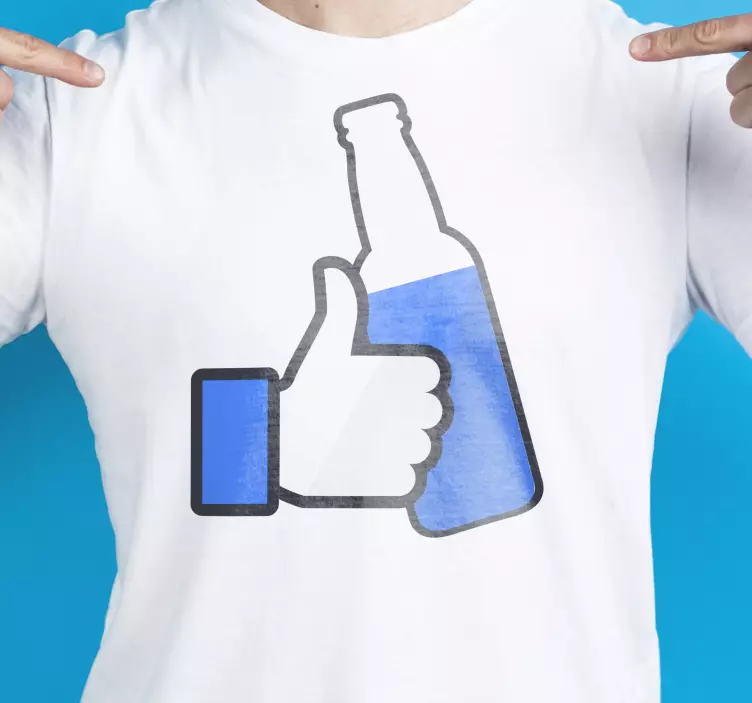 このユニークなデザインは、飲み物と共にサムズアップのジェスチャーを特徴としており、承認と楽しさを象徴しています。現代的なスタイルで、鮮やかな青とクリーンな白を用いて表現されており、カジュアルな着用に適した非公式で祝祭的な雰囲気を捉えています。