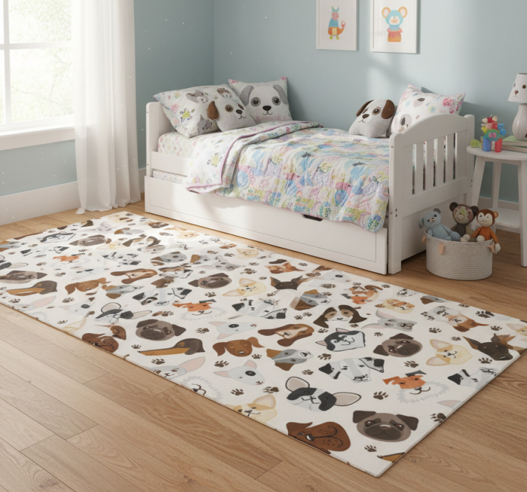 寝室 ビニールマットは、インテリアのアクセントとして最適です。可愛いミックスパピーと犬の柄が、空間に楽しさと温かみを加えます。おしゃれさと機能性を兼ね備えたこの製品は、部屋全体を明るくし、訪れる人に笑顔をもたらすことでしょう!