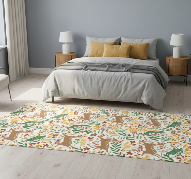 bedroom vinyl rug、寝室ビニールマットグレーの鹿柄と黄色い花は、非常にお手入れが簡単です。汚れがついた場合は、湿った布で軽く拭き取るだけで元通りになります。耐久性があるため、長期間美しさを保ちながら使用できます。