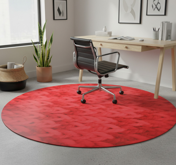 鮮やかな赤い表面を特徴とした円形のデザインで、テクスチャーのある織り模様が施されています。交差する糸が深みと視覚的な興味を生み出し、さまざまな赤の色合いが次元を加えています。全体の印象は魅力的で、どんな空間においても目を引く中心的な存在となります。