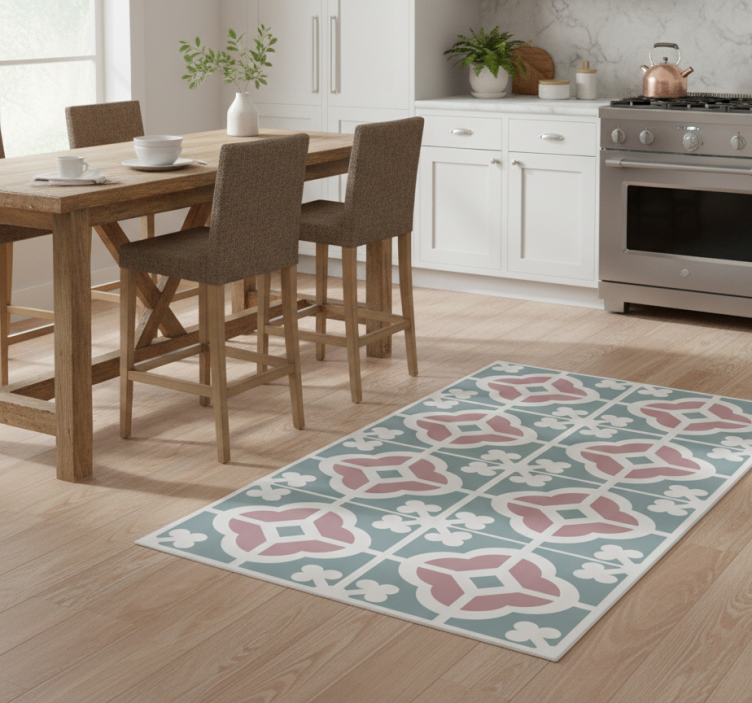 キッチン マット ビニール 花柄タイル