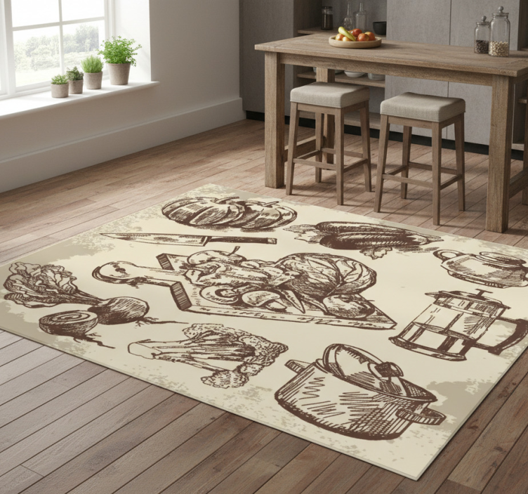 情報 キッチン マット ビニール ヴィンテージイラスト