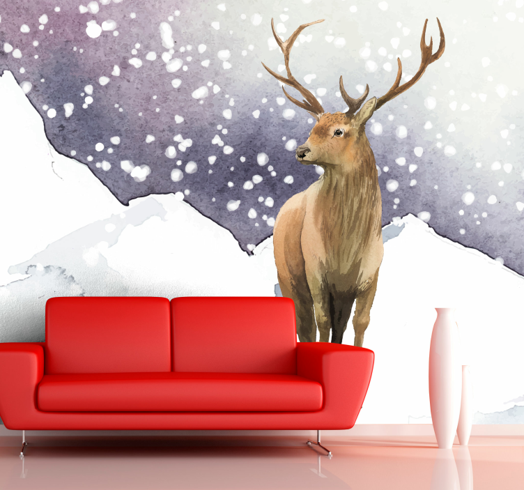 壮大な鹿のシーンが描かれたこの動物壁画は、冬の雪景色を水彩画で表現しています。男性だけの空間にぴったりなこのデザインは、山々を背景にした美しい野生動物の姿を描いており、どんな部屋にも自然の息吹をもたらします。お部屋に特別な雰囲気を加え、訪れる人々を魅了すること間違いなしです!