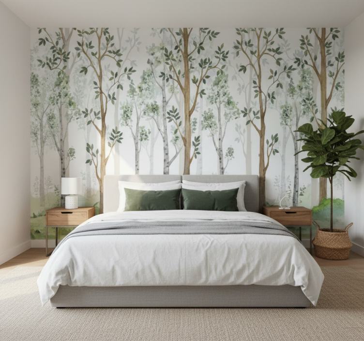 森の壁の壁画は、シンプルながらも洗練されたデザインで、お部屋に心地よい自然の雰囲気をもたらします。ミニマリストボタニカルフィーチャーのデザインは、視覚的なインパクトを持ちながらも過度な主張をせず、どんなインテリアにも馴染みます。リビングルームや寝室、オフィススペースなど、様々な場所での装飾に最適です。