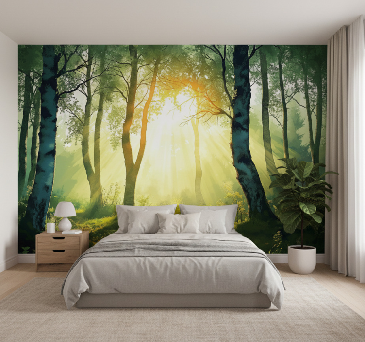 この森の壁の壁画は、特に、おしゃれな装飾としての役割を果たします。森の壁の壁画日差しを浴びた白樺の壁画は、視覚的なインパクトを与え、部屋の雰囲気を一新します。自然を感じさせるデザインが、リラックスできる空間を作り出します。