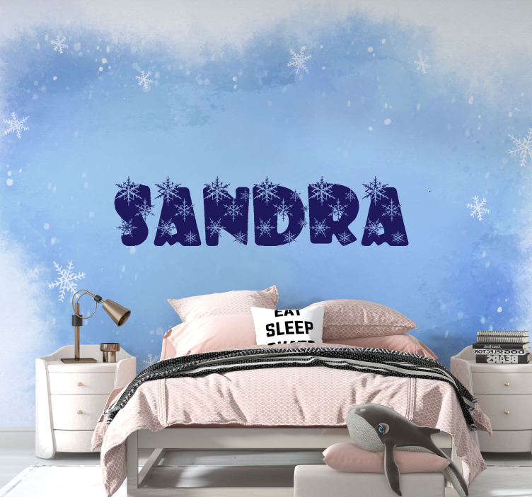 カスタマイズ可能な壁面壁画は、あなたの個性を引き立てる特別なアイテムです。凍った雪片や美しいスノーフレークが描かれたデザインは、青い背景とともに、まるで冬の世界にいるかのような気分にさせてくれます。お子様の名前をカスタム名として取り入れることで、彼らの空間を一層魅力的に演出します。