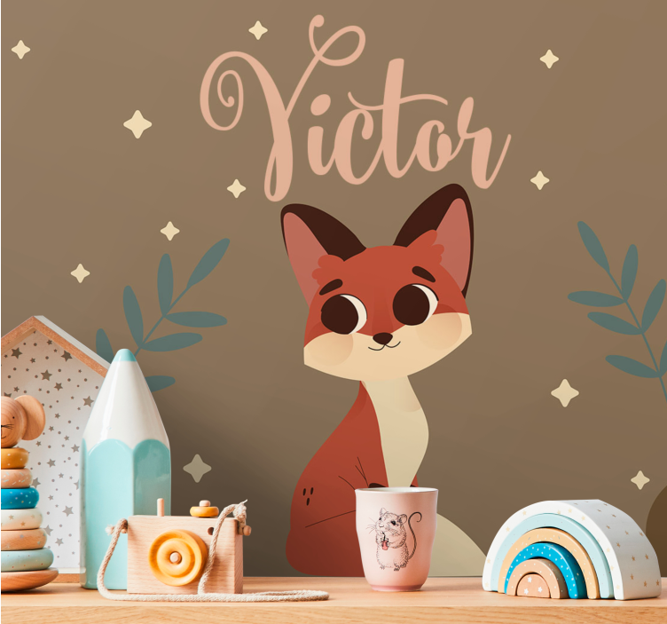 魅力的なキツネのキャラクターが大きな目と遊び心満載の性格で、繊細な葉や星々に囲まれています。このデザインには「Victor」という名前が加えられ、子供の空間や遊び場にぴったりな楽しいモチーフに個性を与えています。