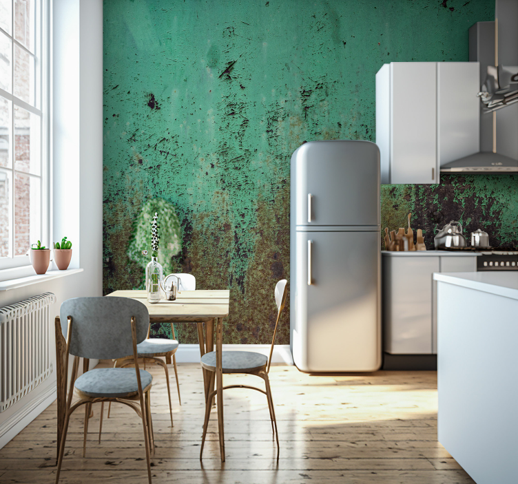 他のテクスチャとパターン 壁画 錆びた緑の壁この鮮やかなデザインには、錆びた、さび、年、金属、工業用などの特徴が含まれています。この壁画は、非織物壁紙で製造されており、マットな色で提供されています。壁にグルーまたは製品にグルーを塗り、ローラー、ブラシ、カッターなどのツールを使用して適用する必要があります。また、湿った布と少量の中性洗剤で簡単にクリーンアップできます。180グラム/平方メートルのグラマージがあり、10〜15年の耐久性があり、スプレーヤーで湿らせることで簡単に取り外すことができます。壁画は50センチメートル幅のロールで製造および出荷され、M2防火認定を取得しています。