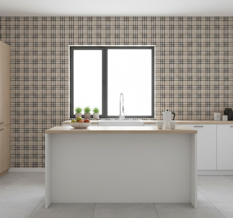 ベージュ、黒、白の複雑な交差が織りなすクラシックなチェック柄が、調和の取れたビジュアルを作り出します。このデザインは、現代的な美学と伝統的なモチーフを見事に融合させた均一なグリッドを特徴としており、多様な好みに応えます。構造的な魅力と微妙な洗練さを持つ空間を引き立てるのに最適です。